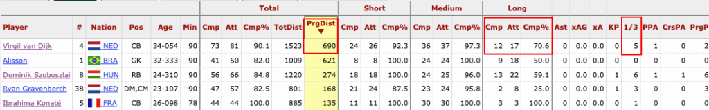 その中でアリソンを超える数値を叩き出しているダイク、さらにパスの成功率も非常に高いです。