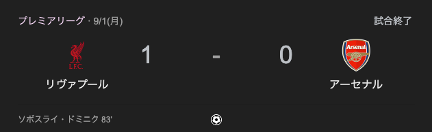 その1点を最後まで守り切ったリバプールが勝利をもぎ取りリーグ唯一の3連勝となりました。